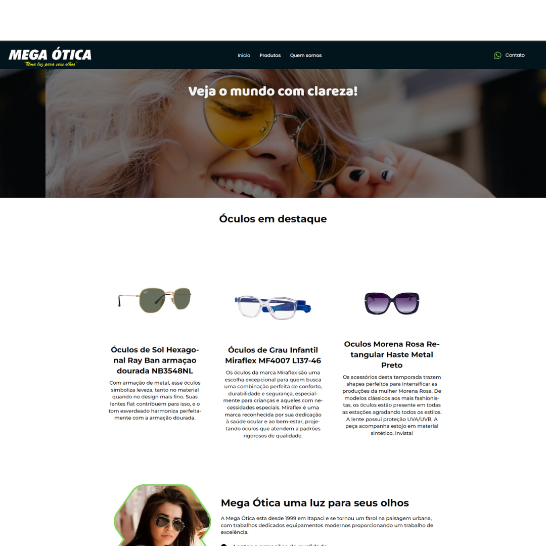 Site institucional para sua Ótica, mostrando a qualidade dos seus óculos e expondo os contatos para seus clientes.