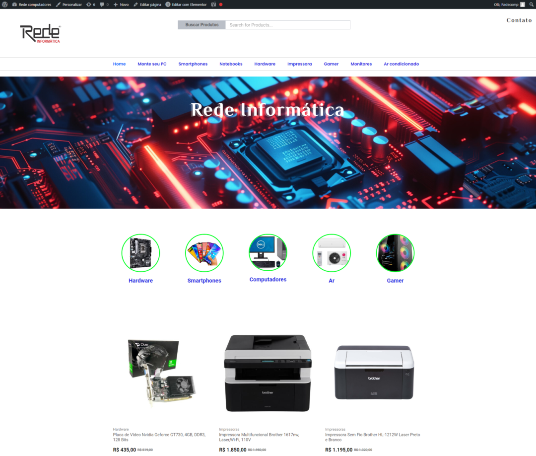 Site para loja de informática separado por categorias de produtos redirecionando cada produto clicado para o whatsapp dos vendedores.